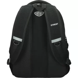 Nahrbtnik ima mehke in oblazinjene naramnice iz trpežnega materiala ter poseben predel za prenosni računalnik. Hrbtni sistem z mrežastim oblazinjenjem zagotavlja dober pretok zraka, nahrbtnik pa je opremljen s trpežnim in velikim ročajem. Na naramnicah in sprednjem delu so odsevni deli za večjo vidnost. Ob straneh sta dva žepa za steklenici, naramnice pa imajo nastavljivo zaponko. Material je 100 % brez PVC-ja. Dimenzije nahrbtnika so 34 × 22 × 45 cm.