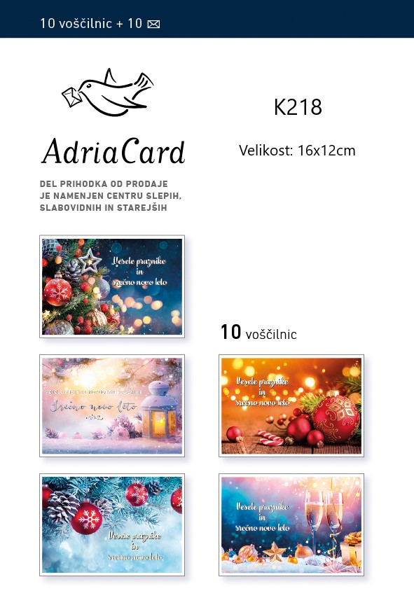 Del prihodka od prodaje voščilnic je namenjen Centru slepih, slabovidnih in starejših.